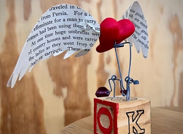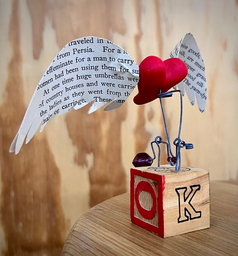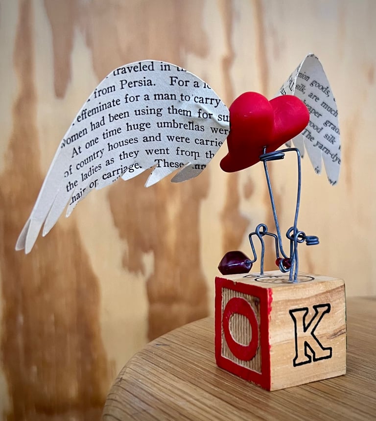 Make a flying heart automata for the special yet quirky loved one in your life! An automata (also known as an automaton) is a mechanical toy that moves using ingenious, and often simple engineering mechanisms. In this class participants will learn how to fabricate a simple mechanism that makes a heart soar, and embellish their heart with wings. All supplies are included.