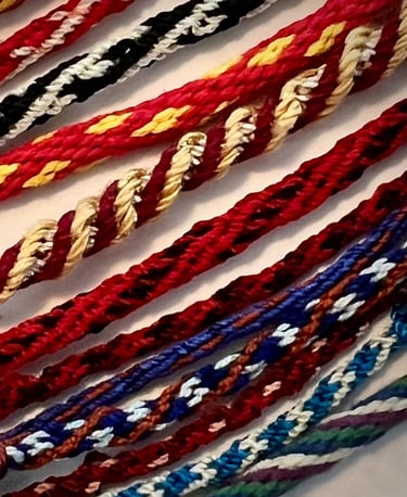 Kumihimo is a traditional Japanese braiding technique that, with minimal instruction and a small hand held tool, can be mastered by anyone! Kumihimo translates to “gathered threads in Japanese, reflecting the method of combining multiple strands. Cords made using this method are highly decorative and strong, allowing for multiple applications.