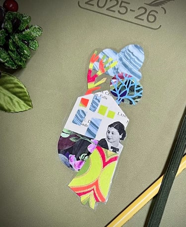 Using fun ephemera, specialty papers, and some other simple tools and materials, students in this class will make several miniature artworks and then turn them into stickers! Students will learn the techniques quickly allowing for an abundance of time for sticker production.
