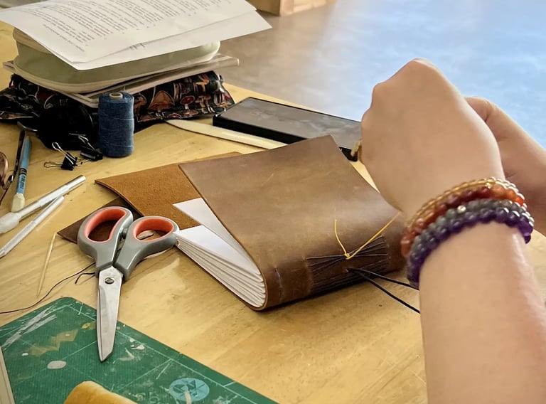 Saddle stitch book binding is a simple and elegant method that results in a great journal or sketchbook that is easily tucked into luggage during an adventure or even your pocket for when inspiration strikes unexpectedly. In this class students will make one saddle stitch book with a felt cover and elastic closure.