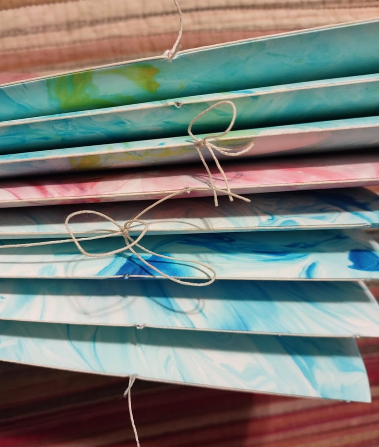 Creative sensory exploration is an integral part of mental wellness. Join us in the studio for a session of sensory based activities at the end of which students will complete a unique, handbound blank booklet useful for notes, sketching, or journaling. Sensory activities encourage participants to be present in the moment and use their five senses to investigate materials and processes in order to make connections in their mind and body. In this class participants will engage in sensory play as they learn a fun marbling technique, how to bind a book using pamphlet stitch, and the benefits of exploratory, unserious art making. All supplies included.